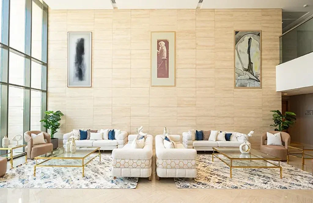 The development stands out with its distinctive glass facade that not only adds a touch of sophistication but also ensures an abundance of natural light, creating a bright and inviting ambiance throughout the building.