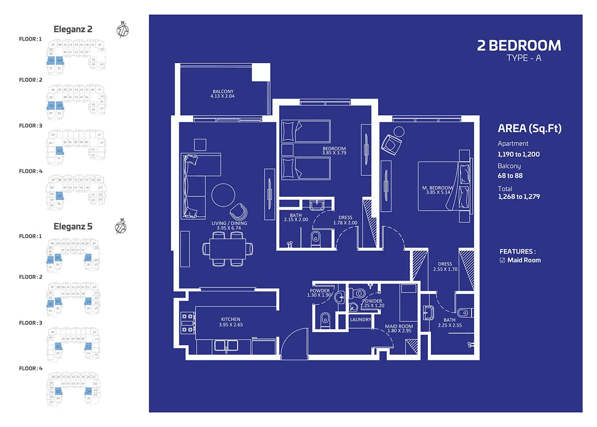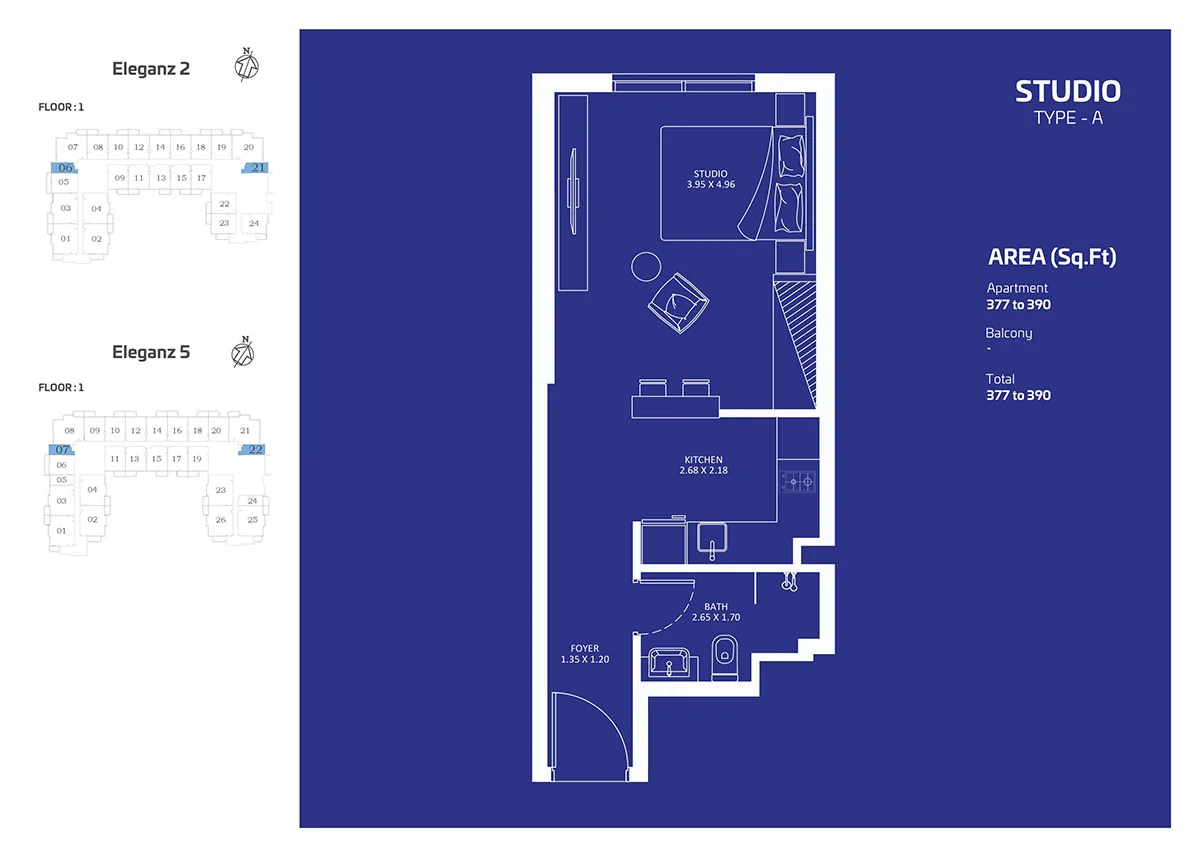 Eleganz at JVC is a new residential façade developed by Danube Properties offering studios, 1 & 2 bedroom apartments, duplexes and 4 bedroom townhouses. In the thriving community, this architectural masterpiece has emerged as a symbol of modern elegance and sophistication, setting a new benchmark for luxury lifestyle in the region, welcoming homeowners seeking modern elegance and convenience.