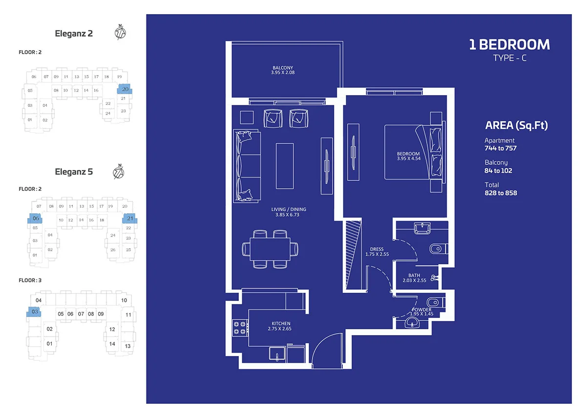 This contemporary design seamlessly blends with the surrounding landscape, enhancing the overall appeal of the development. It offers meticulously designed interiors, striking a balance between comfort and sophistication. Its thoughtful design prioritizes natural light and ventilation, creating a serene living environment.
