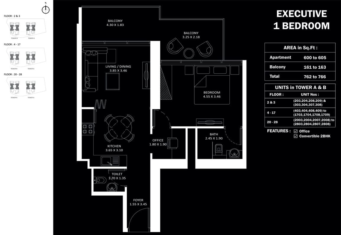 Elegant residential tower features a variety of thoughtfully designed homes to suit different lifestyles. The interiors are carefully created to combine comfort with style.