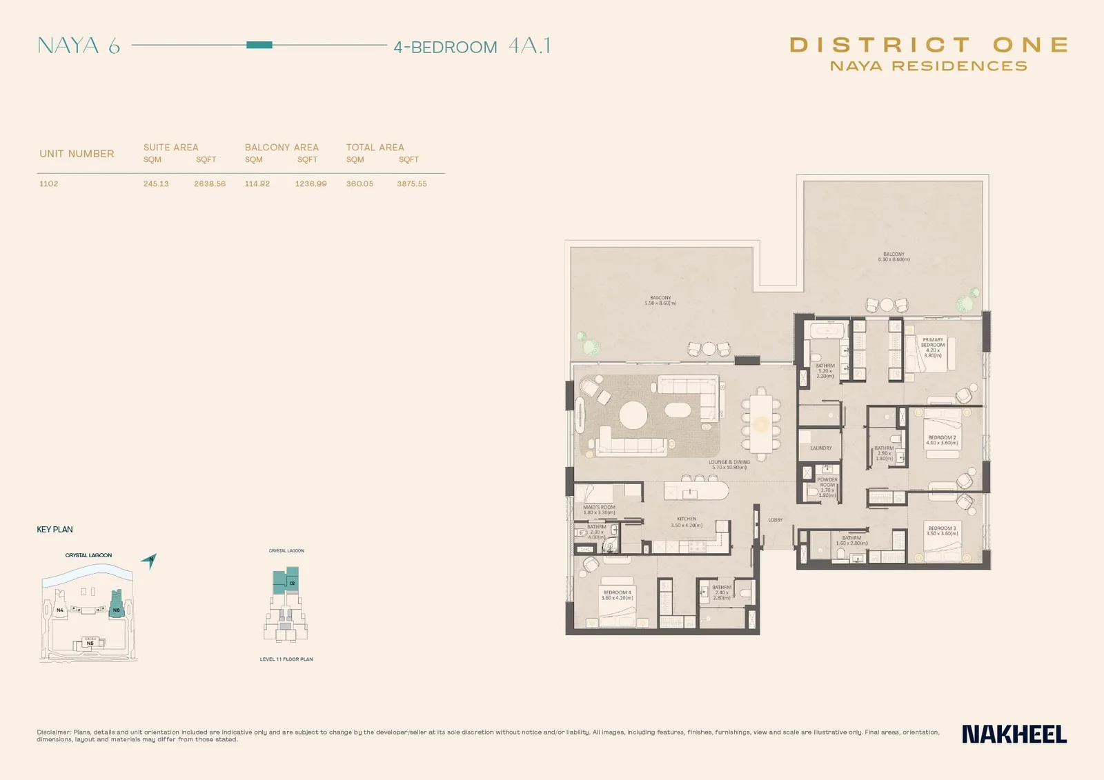Naya Residences at District One (D1) is a new residential project by Nakheel in MBR City, featuring eco-friendly towers with green rooftops. It offers a range of 1 to 4-bedroom apartments, 3-bedroom villas, and 5-bedroom penthouses, all with views of a 1.5-kilometre crystal lagoon and Dubai’s skyline. The residences in MBR City offer exclusive living with easy access to key Dubai locations, including Downtown, DIFC, and Dubai Airport, along with luxurious privacy and skyline views.