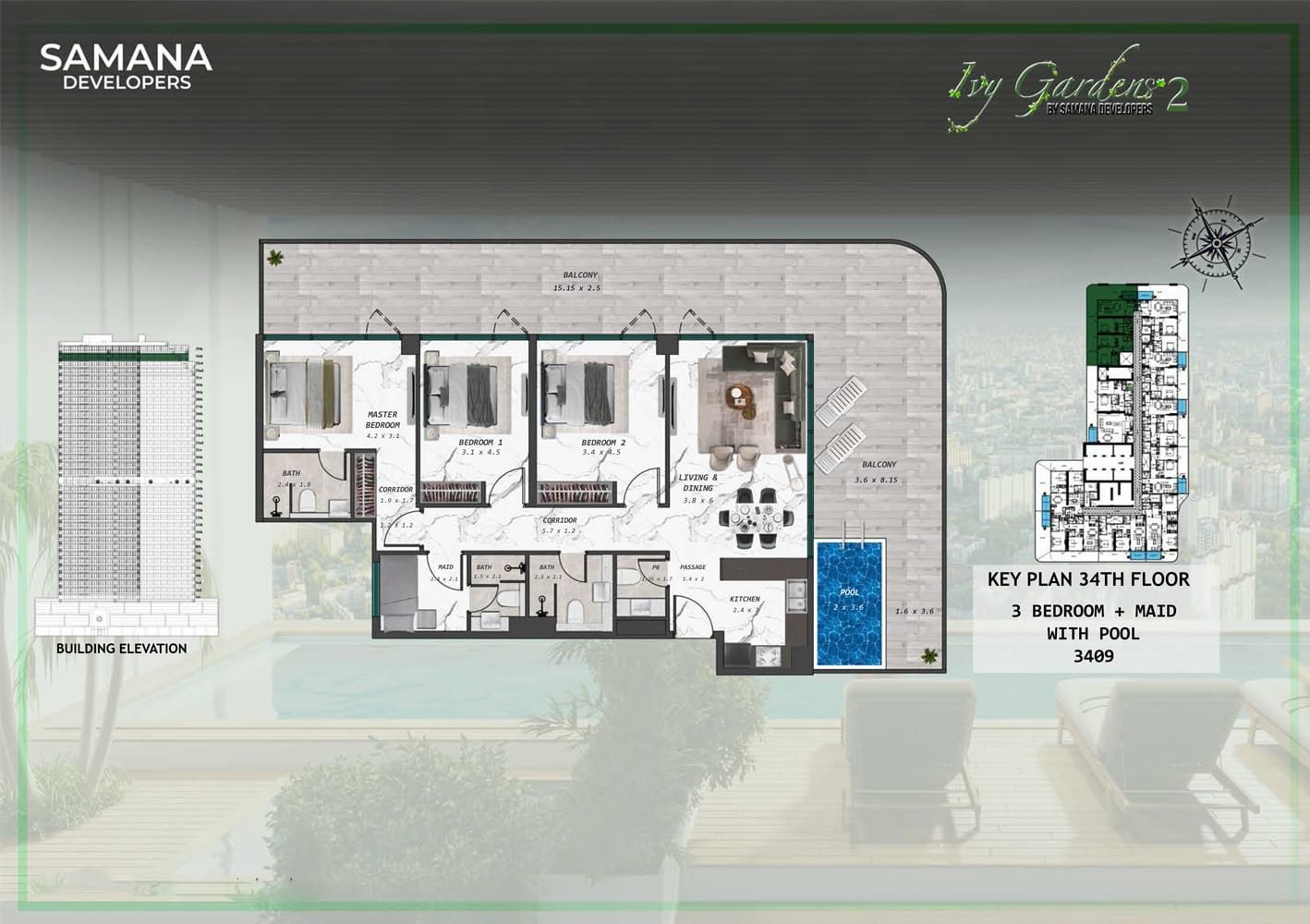 The development offers modern apartments with private pools, blending comfort and elegance to create a peaceful and luxurious living experience.
